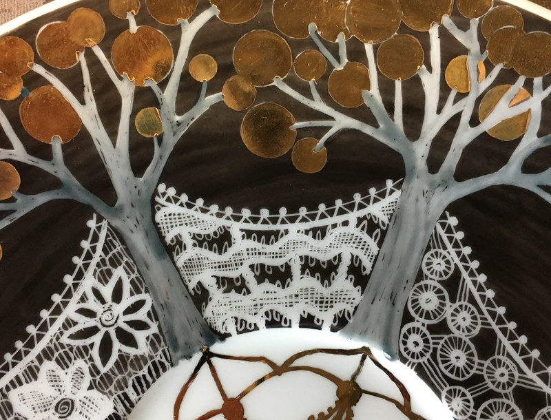 Painting porcelain by hand has been a passion of mine since it was my first job in the arts. My focus is now on constantly refining ways in which to maintain and promote a lower impact on the environment: I source blank or faded porcelain from local charity shops or estate clearances, I use solar energy to power my firing kiln, and I sell locally while also providing access to specialised workshops and collaborative projects.